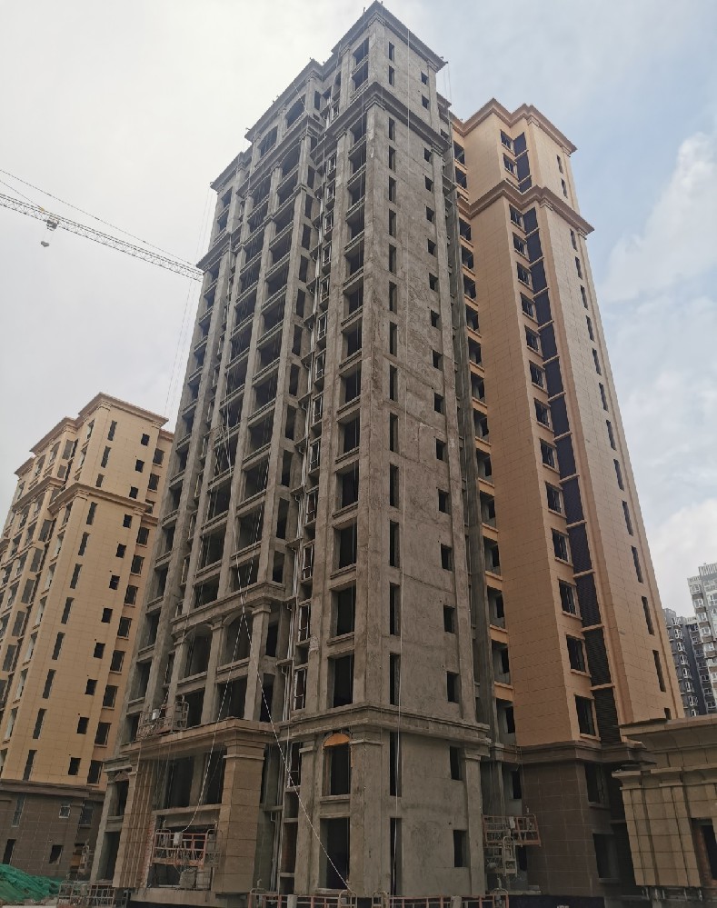 4、4#楼:内墙抹灰完成;室内排水管安装完成70%;消防报警线路铺设完成80%;飘窗百叶安装完成90%;消防电梯安装完成20%;