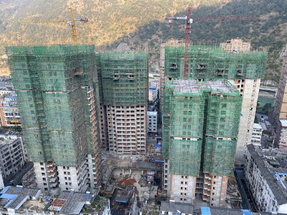 2、2#楼:公区墙地砖施工完成90%;强电电井桥架安装完成;电井弱电桥架安装完成;厨房、卫生间防水施工完成30%;客梯轨道安装完成50%;公区吊顶龙骨完成;