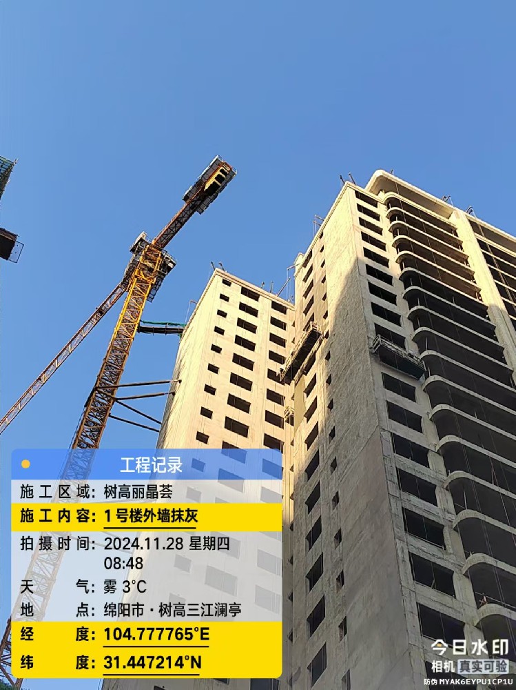1、1#楼:公区墙地砖施工完成60%;厨房、卫生间防水施工完成80%;施工电梯洞口外墙完成50%;室内电梯门洞封堵完成;非居民供电电缆及配电箱安装完成80%;燃气立管支架焊接加工完成40%;