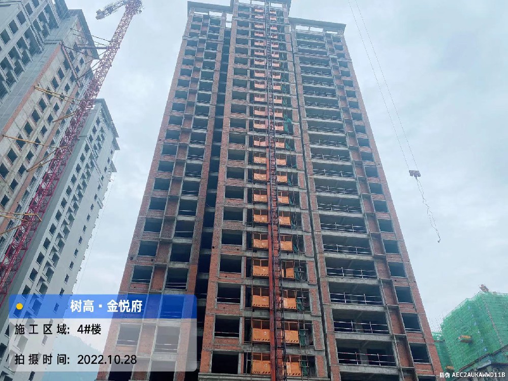 3、4#楼主体结构封顶;屋面层花架施工完成;砌体及二次结构施工完成50%;花架涂料施工完成60%;