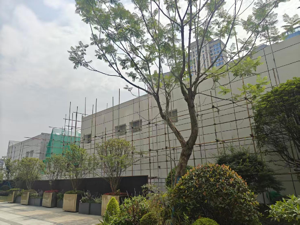 ③完成3#楼架空层吊顶、墙面基层处理,并推进架空层涂料施涂、商业脚手架搭设;