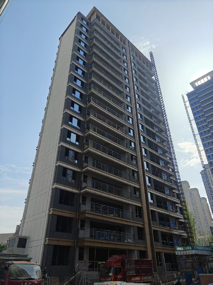 2、8#楼:室内电梯安装完成80%;公区消防报警穿线施工完成40%;门窗玻璃安装完成10%;