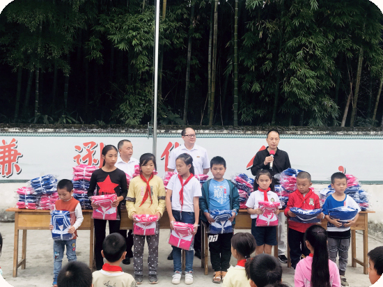 2019年9月30日,在这个金秋时节,集团工会副主席叶帆一行受集团董事长梁树高先生的重托,带着对家乡浓浓的深情厚谊,向黄江林学校的全体师生送上了温暖的秋季校服!