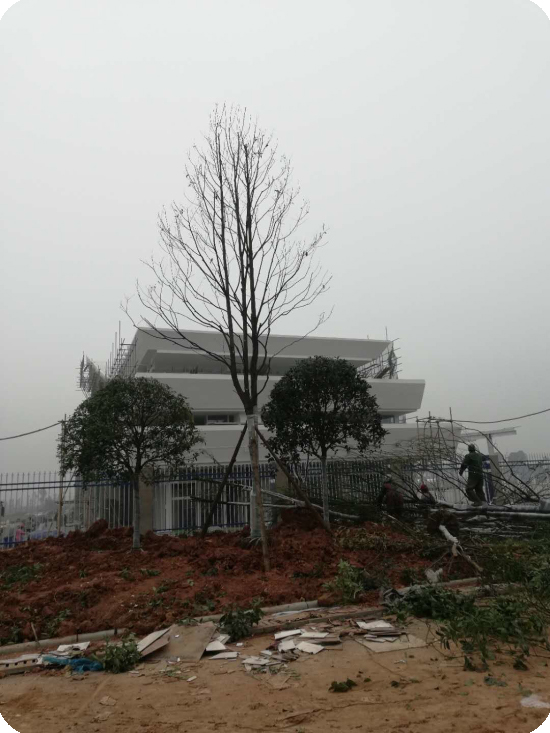 工程开始仅几天时间,原本光秃秃的工地上,已树立起大片苗木,艺和园林管理人员带领十余名工人分工明确,密切配合,发扬特别能吃苦,特别能战斗的精神,积极、主动地强化时间观念和责任意识,在保证质量的前提下全力以赴,力争在进度上作出突破,目前的施工效果以及进度得到了派出所领导的一致赞扬。