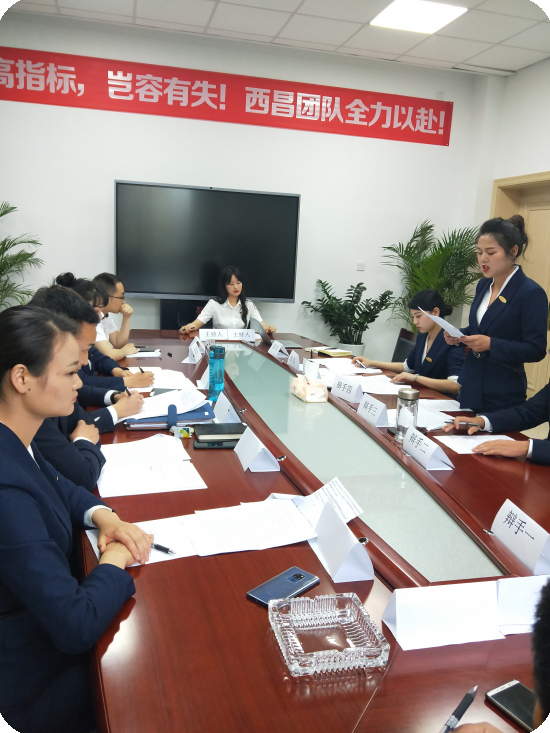 4月16日上午9点半,树高集团西昌公司“翡丽华府”销售团队在公司会议室举行销售内部对抗辩论赛。