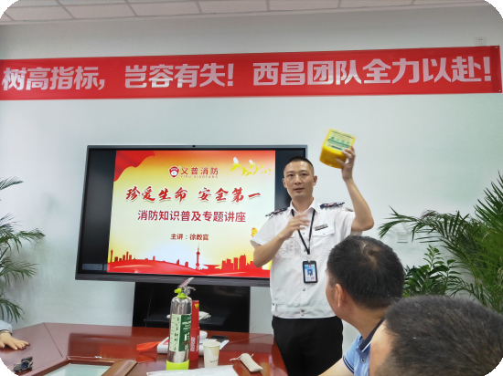 西昌公司邀请了西昌市义务普及消防中心教官徐悦博到场为大家讲授消防知识。