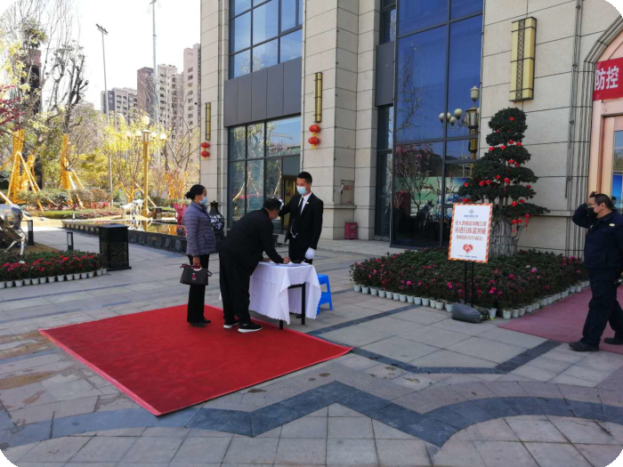 车场入口铺设地毯喷洒消毒药水,为进出的每一辆车进行消毒。到访客户在工作人员的指领下,前往消毒区为双手、鞋底、随身物品进行消毒,及时为每一位客户测量体温、做好登记。特殊时期,防疫物资短缺,购买困难且价格偏高,华府、庄园工地复工在即,购买的物质一批又一批被疫情重灾区拦截,树高物业西昌公司的每一位员工一次又一次寻找各种渠道,在积极不断的努力下,终于将防疫物资购买到位,为全面复工做好准备。