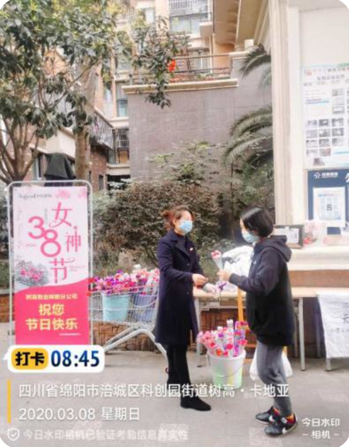 虽然肺炎疫情还未完全解除,但多地已连续20多天无新增病例,全国疫情防控正在向好的态势发展,经济也在慢慢复苏。在这春暖花开、春意盎然的三月,我们如约迎来了三八国际妇女节,是女业主们美丽的节日。为缓解疫情给各位业主带来的紧张情绪,树高物业为业主们精心准备了香气扑鼻的鲜花送给小区的“女神”们。还特意为小区的“白衣天使”及社区工作者送上门。在这个特殊的节日里,树高物业以最真诚的祝福,祝小区女业主们节日快乐。向奋战在抗疫一线的医护人员致敬,向物业公司全体女员工道一声,您们辛苦了!