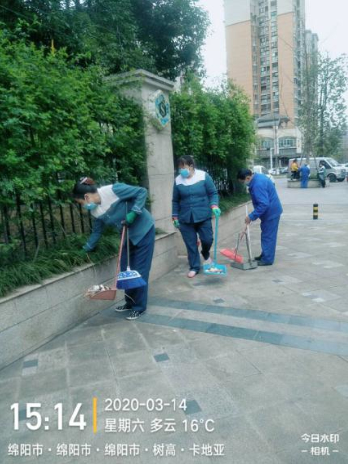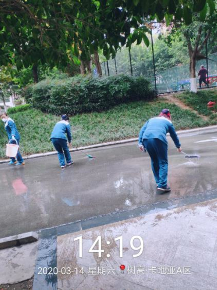 3月是学雷锋月,新冠疫情防控的阻击战中,我们身边涌现出了大批的活雷锋。在绵阳城建的号召下,3月14日、15日,树高物业管理层、客服、维修工、保安保洁全体员工齐上阵,对园区道路、门窗、小广告、下水道、废弃口罩垃圾桶等区域卫生大清洗、大消毒、大扫除,为打赢疫情防控总体战、阻击战及全市复工复产营造良好环境。树高物业将全力以赴,疫情不结束决不轻言成功。