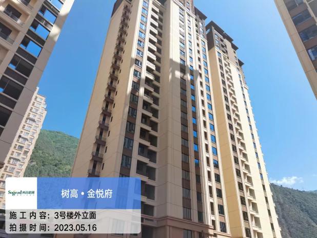 3、3#楼主体结构验收完成;外墙保温施工完成;外墙涂料施工完成;内墙抹灰施工完成;门窗玻璃安装完成;栏杆玻璃安装完成90%;精装修进度:二单元室内穿线完成、吊顶边龙骨施工完成、封板完成100%;空调安装完成;地暖施工完成;一单元沉箱防水施工完成、卫生间排水管施工完成;墙地砖完成50%;石膏找平层完成60%;窗台板安装完成40%;门头施工完成100%;