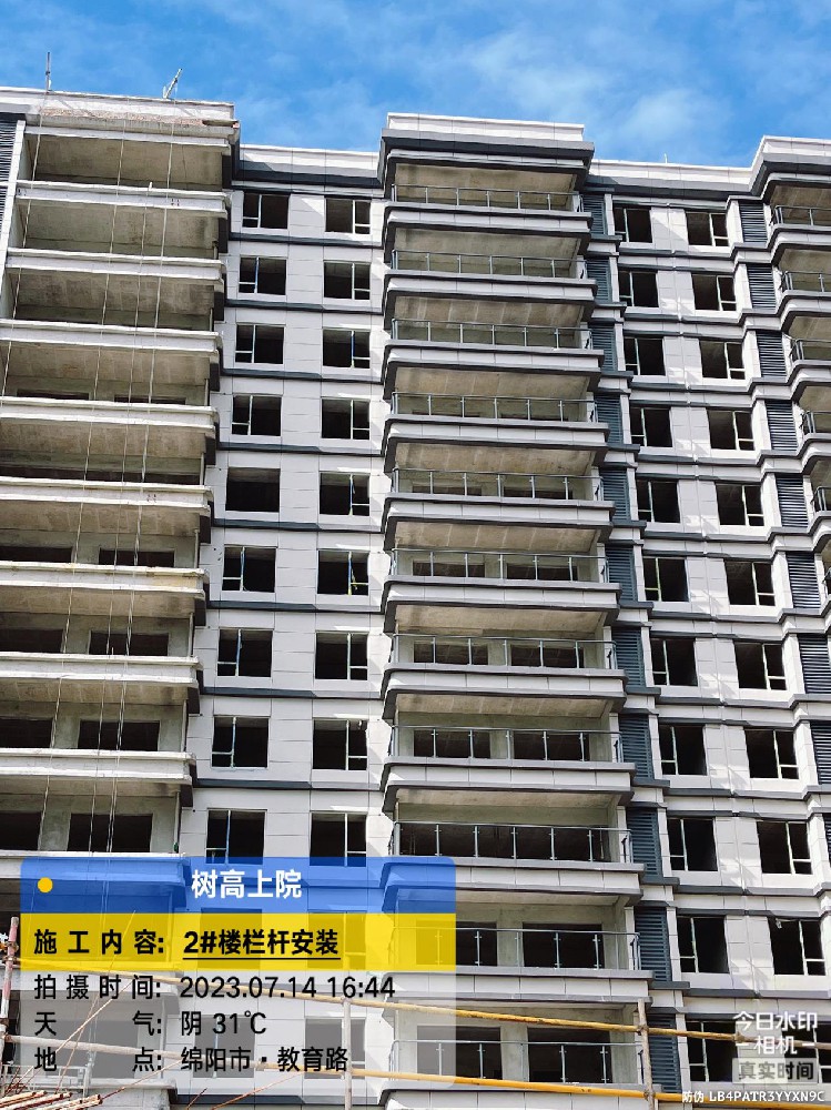 2、2#楼主体结构验收完成;内外墙抹灰完成;外墙保温施工完成;外墙涂料施工完成;门窗玻璃安装完成90%;栏杆玻璃完成;精装修进度:室内放线完成、空调铜管及吊杆完成;地暖施工完成;水电管道施工完成;吊顶龙骨施工完成;室内石膏板封板完成100%;窗台板施工完成100%;墙地砖施工完成80%;墙面石膏找平施工完成70%;石膏线安装完成70%;门头施工完成100%;