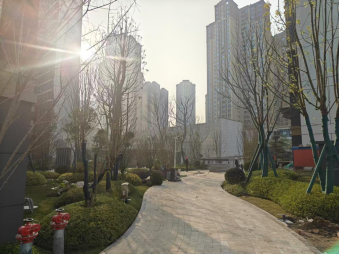 10、总平园林管网安装完成100%;园区平场完成100%;道路硬化完成100%;花池砌筑完成95%;基础开挖完成100%;乔木种植完成95%;亭子铝单板施工完成100%;围墙做砖抹灰及围栏施工完成;水池瓷砖施工完成;7#楼商业前石材铺贴完成100%;小路石材铺贴完成95%;小苗种植完成90%;景墙施工完成95%;围墙栏杆安装完成80%。