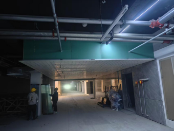 9、地下室全部封顶;地下室抹灰施工完成;地下室消防施工完成;地下室土建部分整改完成50%;星空顶基层完成98%;功能间贴砖70%;地下室门厅墙地砖完成60%,星空顶区墙面砖完成50%;地坪漆打磨地坪完成30%。