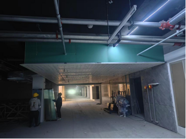 9、地下室全部封顶;地下室抹灰施工完成;地下室消防施工完成;地下室土建部分整改完成90%;星空顶基层完成100%;功能间贴砖100%;地下室门厅墙地砖完成100%,星空顶区墙面砖完成100%;星空顶完成100%,地坪漆打磨地坪完成80%。