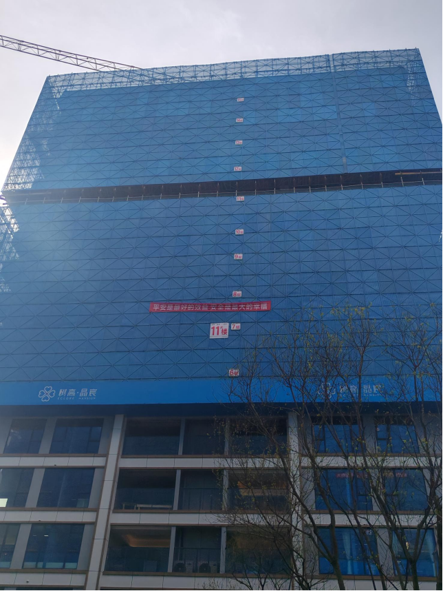 4、11#楼16层主体结构施工完成;6~12层内外墙砌体已完成,二次构造柱关模至7层;外立面真石漆已完成(1-5层);门窗框、扇、玻璃安装完成(1-5层);铝板线条安装完成(2-5层);架空层幕墙玻璃安装完成;门头不锈钢铝板安装完成100%;空调穿孔铝板安装完成2-5层;栏杆安装完成2-5层;