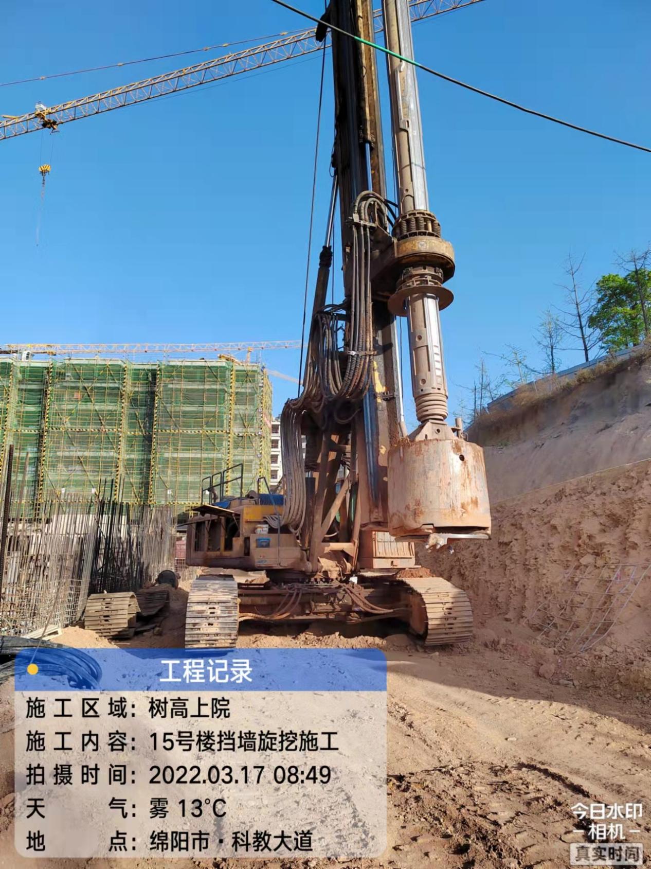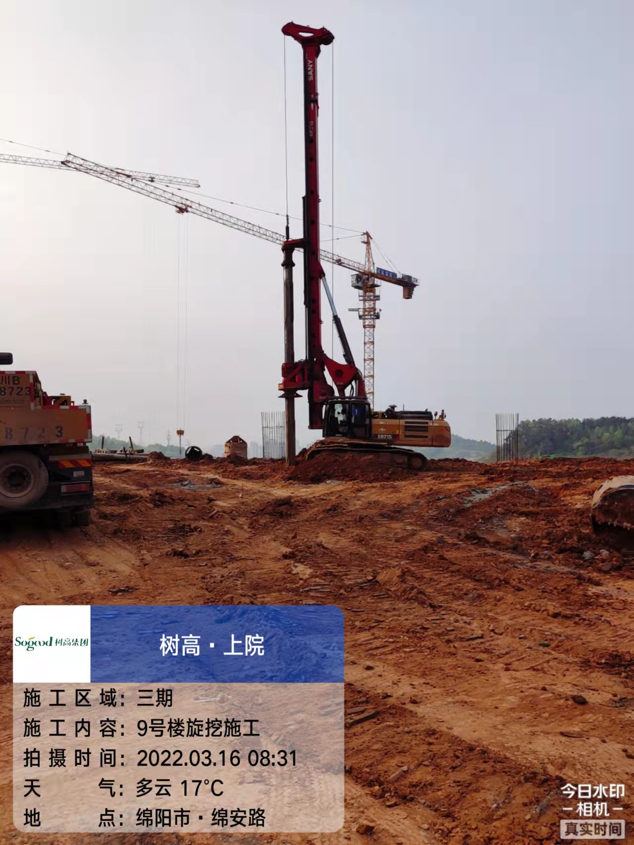 4、9#楼:完成主楼旋挖桩施工任务20%;