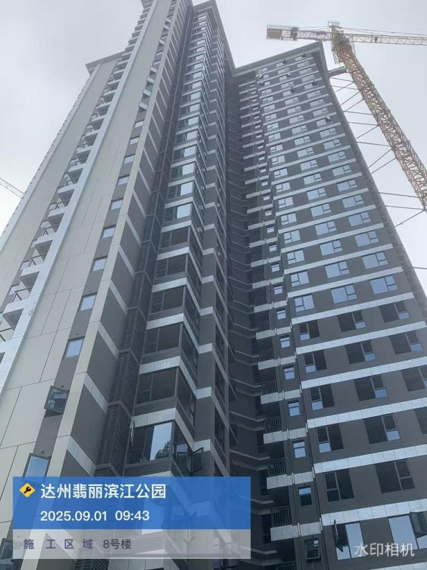 4、4#楼:主体结构完成,二次结构及抹灰施工完成,外立面保温、真石漆完成,公区墙地砖完成2层至25层,公区楼梯间及通道腻子施工完成2层至25层,公区吊顶完成2层至25层,屋面及阳台栏杆安装完成,门窗玻璃安装完成30%,厨卫间防水施工完成,防火门安装完成50%,消防电梯前室报警按钮、声光报警等设备完成70%,自来水已完成水表安装,客梯快车调试完成,担架梯已完成轨道安装,强电井高低压表箱及桥架完成;