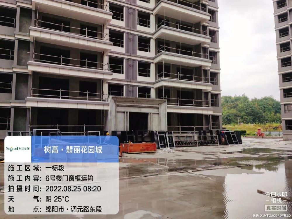 土建:施工电梯阳台洞口抹灰完成50%,门窗玻璃安装完成80%;