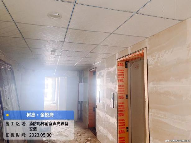 消防:防火门安装完成95%,消防电梯前室消防联动及报警系统、疏散指示等设备完成98%;