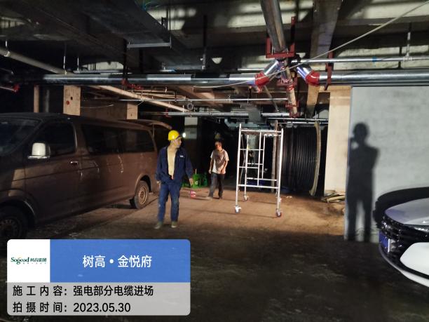弱电:弱电桥架完成,监控室防静电地板完成,四网合一主线完成。