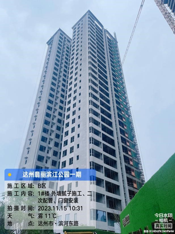一、1#楼门窗玻璃、公区楼梯刮白、电梯前室吊顶腻子石膏施工完成、第二台电梯安装完成、入户门安装完成、二楼以上及地下室公区贴砖完成;