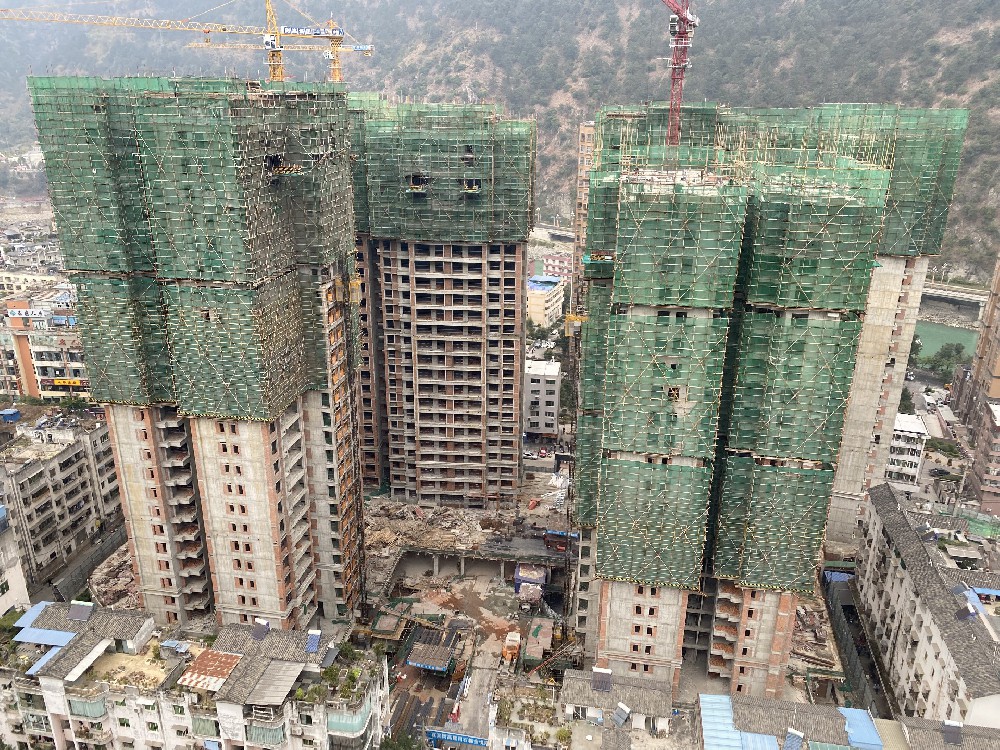 2、2#楼:30层结构完成90%;外墙砌体完成70%;室内砌体砌筑完成60%;
