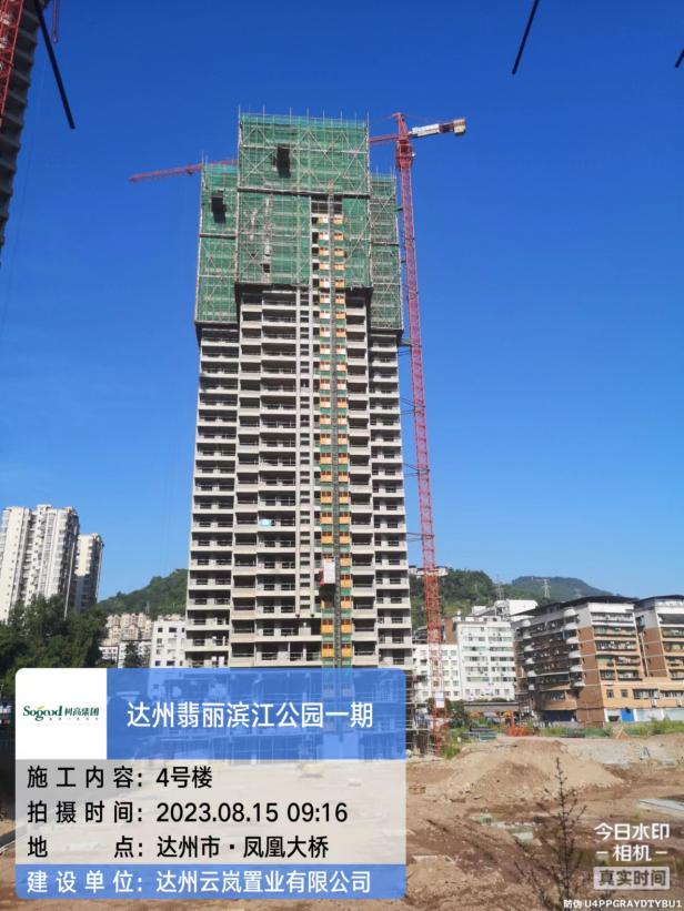 4、4#楼:30层结构完成90%;外墙砌体完成70%;室内砌体砌筑完成50%;
