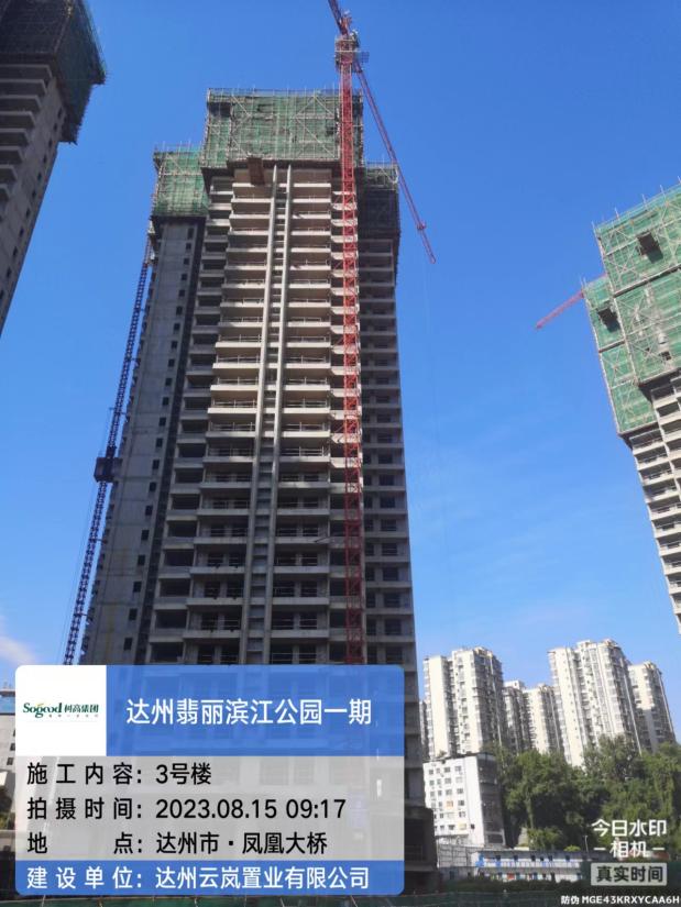 3、3#楼:30层结构完成90%;外墙砌体完成70%;室内砌体砌筑完成60%;