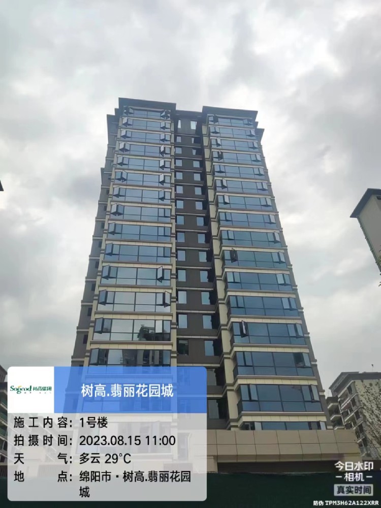 2、园林景观施工乔木完成90%,雨污主管安装完成90%,消防道路硬化完成70%;