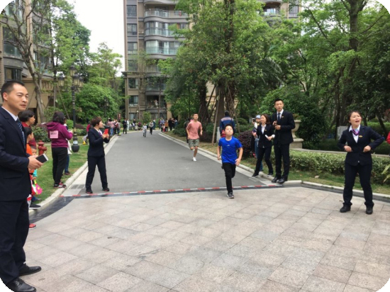 上午9点,运动会在业主们热情洋溢的气氛中拉开了帷幕。此次运动会共设六个运动项目:环小区长跑、跳绳、接力赛、3人4足、夹玻璃珠、拔河等环节。整个活动现场运动员们情绪激昂、积极参与。整个比赛精彩纷呈,场下的啦啦队欢呼雀跃,处处欢声笑语,家人、邻里之间其乐融融,一系列团体比赛,更是让以往互不相识的业主们成为了好邻居。为感谢业主对物业工作的大力支持,物业公司为参赛的所有运动员及参与的业主们准备了丰富的礼品。大家都为孩子天真无邪的笑容,老人的老当益壮和年青人的顽强拼搏、奋发进取的精神呐喊喝彩。祝贺此次运动会取得圆满成功!