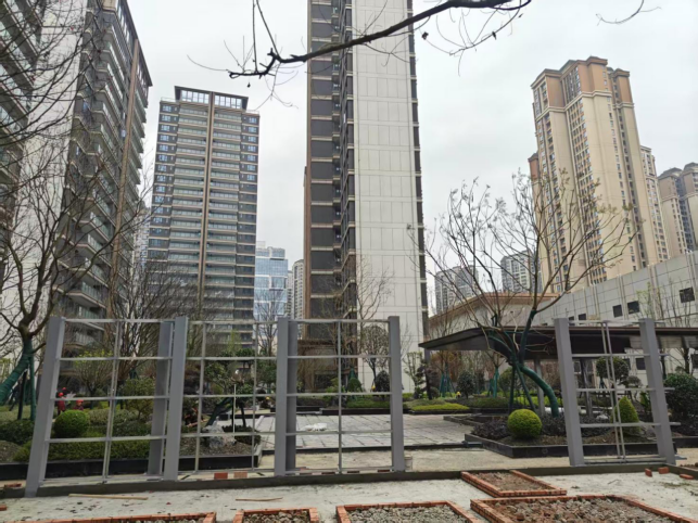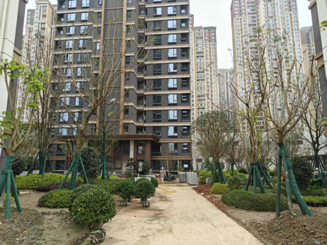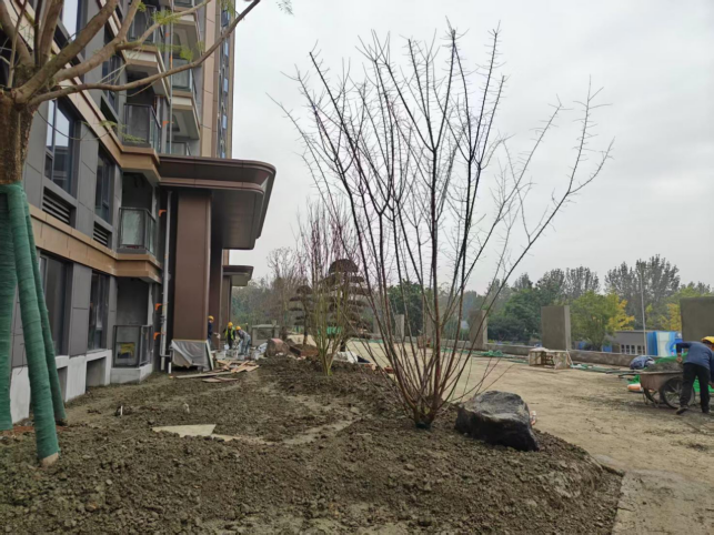 10、总平园林管网安装完成100%;园区平场完成100%;道路硬化完成100%;花池砌筑完成90%;基础开挖完成100%;乔木种植完成90%;亭子铝单板施工完成70%;围墙做砖抹灰完成100%;水池瓷砖施工完成;7号楼商业前石材铺贴完成40%;小路石材铺贴完成15%;小苗种植完成20%。